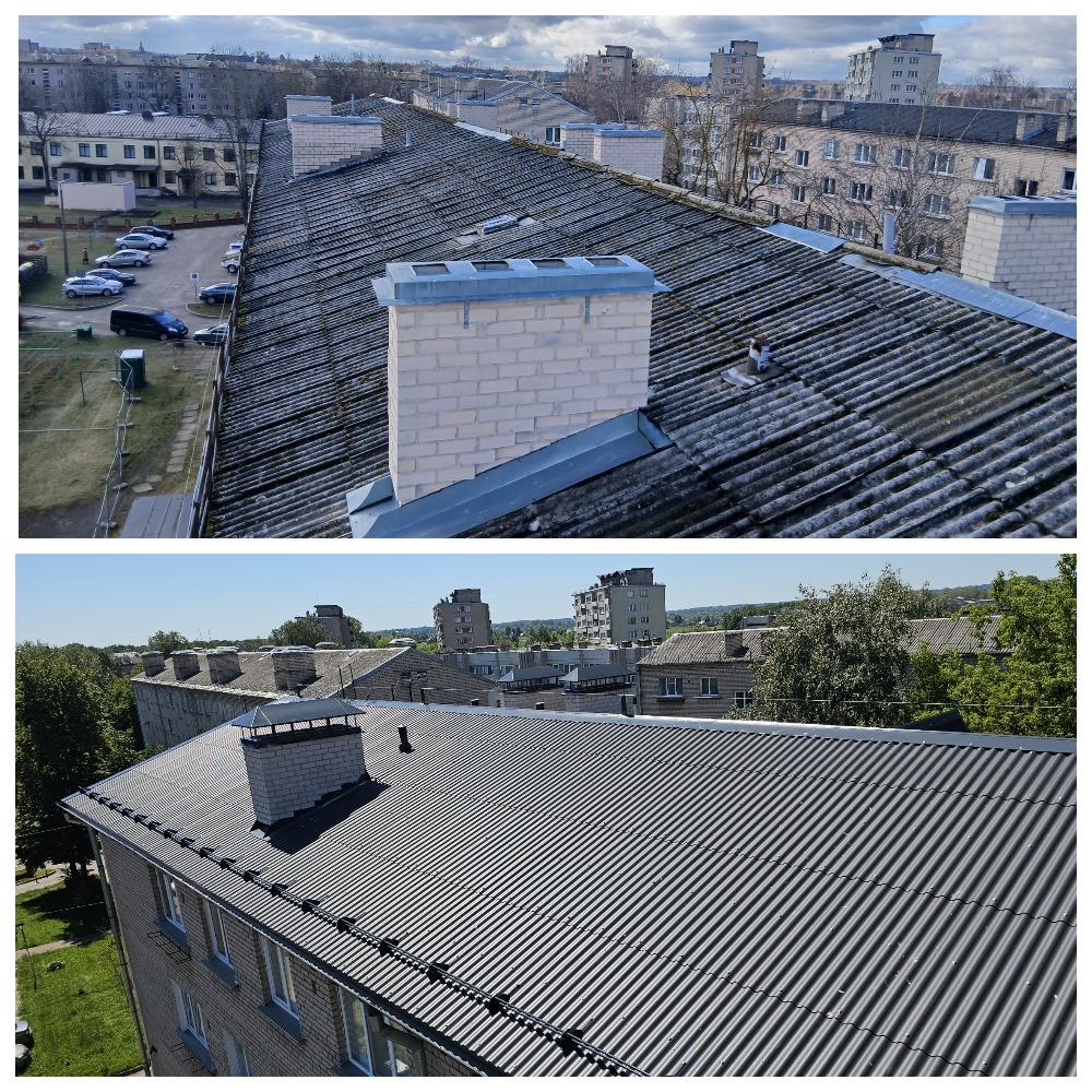 - logu nomaiņa, - teritorijas labiekartošana, - bēniņu pārseguma siltināšana. - Tambura koka durvju nomaiņa - Jumta remonts